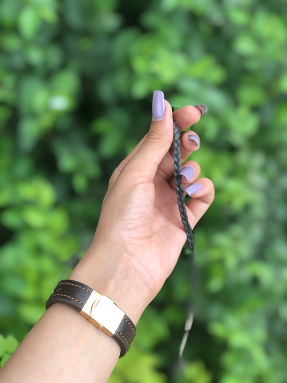 این محصول با چرم طبیعی گاوی تولید شده و از یراق با کیفیت که ماندگاری رنگ طولانی داره استفاده شده . چنانچه میخواید موی بافته شده رو روی دستبند نصب کنید روی لینک زیر کلیک کنید .